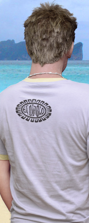 映画「 ザ・ビーチ」で、リチャード(レオナルド・ディカプリオ)が着ていたTシャツを忠実に再現しました。写真のサイズはLサイズ(マネキンは180cm)、表記はほぼ日本サイズです。