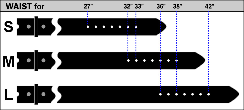 Belt: Genuine Cow leather, 1.5" (38mm) width, S(for 27"-33" waist) / M(for 32"-38") / L(for 36"-42")