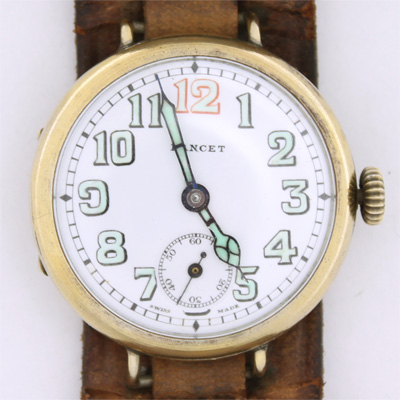 実際にこの時計は映画同様に第一次大戦期に米兵や英兵の将校に贈られた時計です。これほどまでにストーリー性があり、記憶に残る時計はそうはありません。またこれほど状態のいいモノは大変希少です。96年前の逸品です。