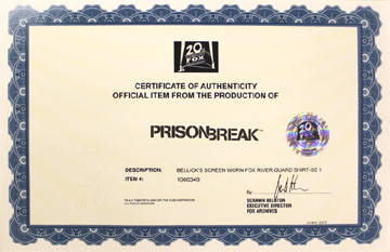 人気TVドラマ「プリズン・ブレイク」シーズン 1で、刑務長のべリック(ウェイド・ウィリアムズ)がスクリーンで着用した制服(シャツ)です。 左肩にフォックス・リバー刑務所のパッチがつきます(フォックス・リバーは架空の刑務所であるため、市販品はありません)。 べリックが着用した刑務官シャツであることを証明する20世紀FOXの証明書が付きます。 コレクションとしてはもちろん、実際に着用しても話題になる一品です。 |