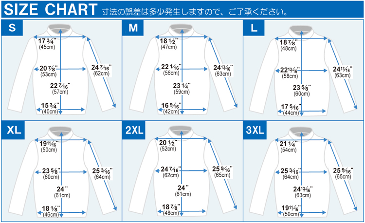 Sサイズ Mサイズ Lサイズ XLサイズ 2XLサイズ 3XLサイズ