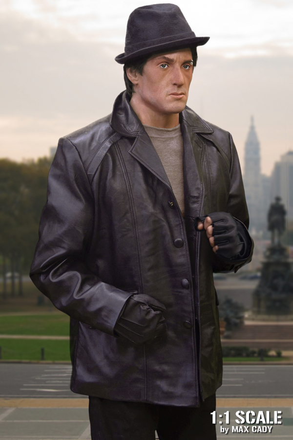 映画「ロッキー」シリーズで、ロッキー(シルベスター・スタローン)が着用していたレザー・ジャケットを細部まで忠実に再現しました。「ロッキー」、「ロッキー2」の下積み時代(「ロッキー4」ではその回顧シーン)、「ロッキー5」では経理に騙され破産、またこのジャケットと帽子を着用することになります。革手袋も常にジャケットと一緒に着用されており、「ロッキー5」ではこの革手袋で裏切った弟子のトミーとストリート・ファイトをします。ハングリーなロッキーの象徴的な衣装です。