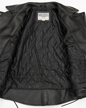 映画「 ターミネーター」でT-800(アーノルド・シュワルツェネッガー)が着用していたライダース・ジャケットを忠実に再現しました。エポレット(肩章)がなくマッチョ感を強調するパターンで、襟を立てて着れば一目でそれとわかります。サイズは日本サイズで仕立てています。牛革製。
