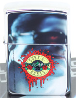 Could Be Mine"のプロモーション・ビデオにはT-800(アーノルド・シュワルツェネッガー)が登場)。T-800とT-1000(ロバート・パトリック)が最初に対峙する際、T-800はバラ(Rose)の花束の箱に隠し持っていたライフル(Gun)を取り出すという意図的なシーンがある(右は1996年製のガンズのジッポー。ヨーロッパでしか販売されておらず、当時より入手困難である)。